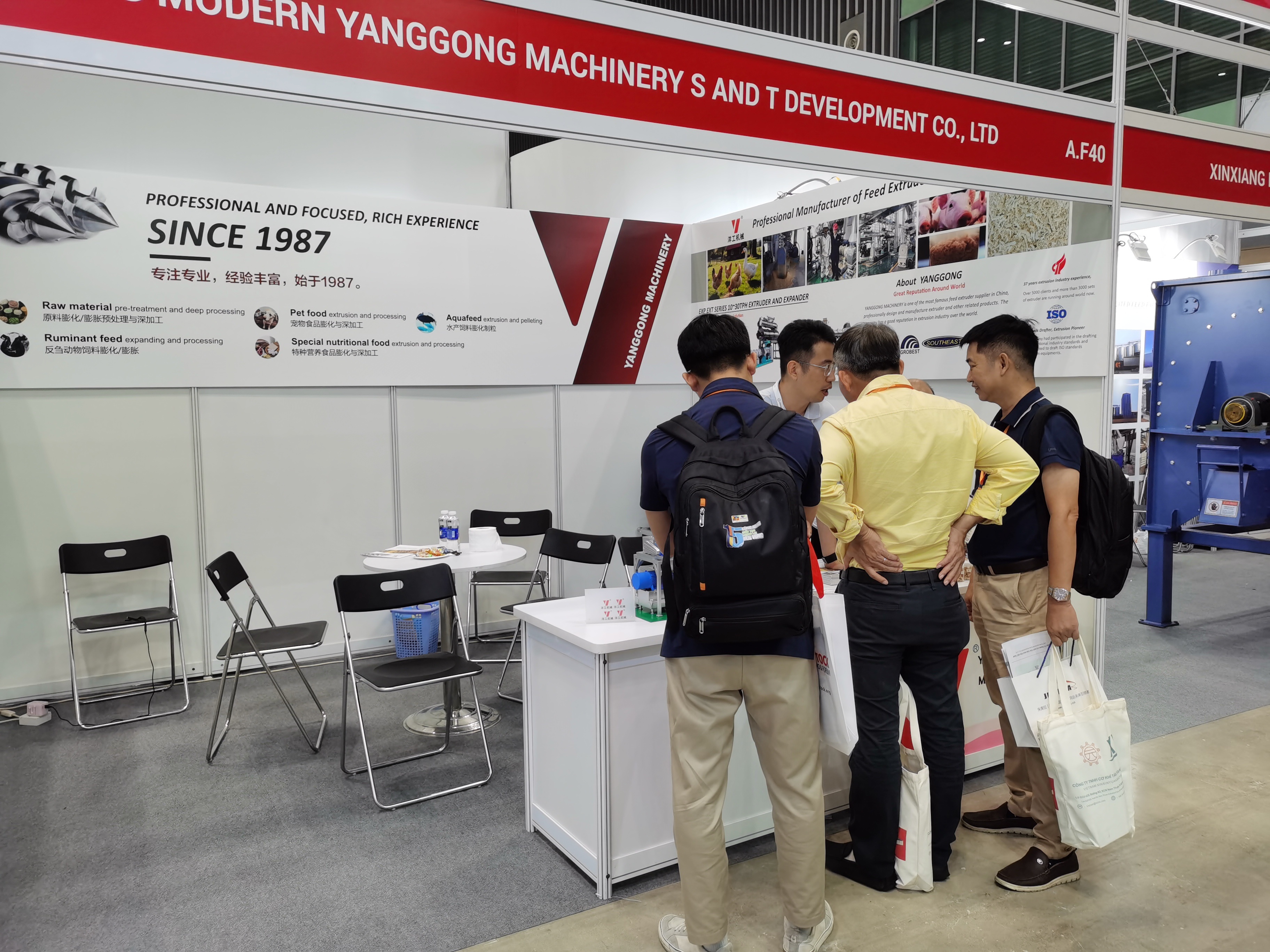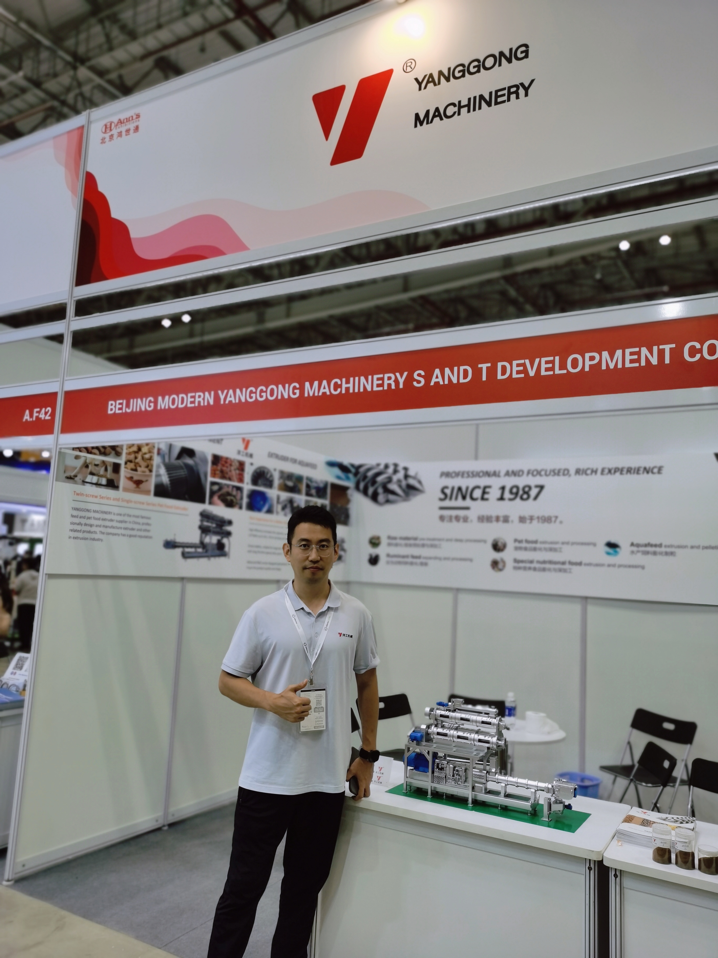 在展会期间,我们的团队与众多国际客户进行了深入且富有成效的沟通。这些积极的沟通与交流,不仅让客户对洋工机械的产品和技术有了更深入的了解,也让我们收获了满满的认可与期待。许多客户在沟通结束后,对我们的产品给予了高度评价。一位客户称赞道:“洋工机械的膨化机,技术先进、性能稳定,是我们提升饲料生产质量和效率的得力助手,期待未来能与洋工机械达成更多的合作,共同为畜牧行业的发展贡献力量。” 这些认可和期待,不仅是对我们产品和技术的肯定,更是对洋工机械品牌的信赖,让我们深感自豪,也备受鼓舞 。