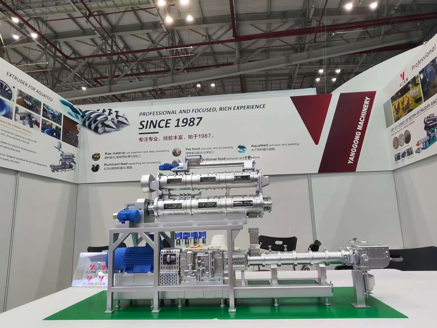 在此次展会中,我们携带了最新款双螺杆膨化机械模型,方便参观者近距离了解设备工作原理。